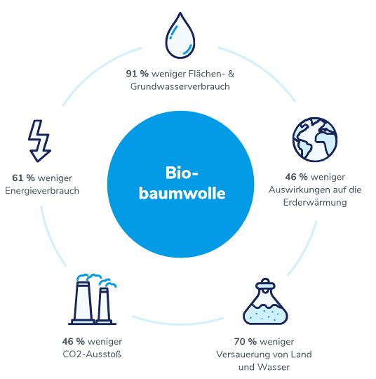 Biobaumwolle stammt aus Saatgut, das nicht genmanipuliert und ohne Einsatz von chemischen Pestiziden und Düngemitteln angepflanzt wurde. Der Anbau erfolgt unter Anwendung natürlicher Methoden wie der Wechselwirtschaft, die nicht nur der Umwelt zugutekommt, sondern auch Biodiversität erzeugt und die Lebensqualität der Bauern fördert.